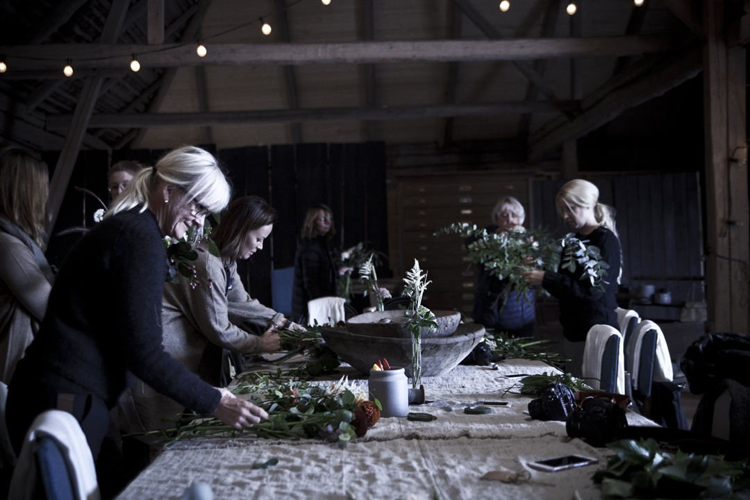 I gedigen gårdsmiljö samlades 16 kreativa kvinnor för att tillsammans binda vackra blombuketter som sedan fotograferades tillsammans med rekvisista från gården. Vi på Blomverket delade med oss av av tips och tekniker på hur man skapar en vild bukett i sann ””Blomverket-anda” utifrån vårt sätt att tänka kring tonval & kombinationer av blommor. Under själva fotograferingsmomentet gick vi igenom några enkla tips på hur man skapar en egen fotostudio hemma. Workshopen innehöll även metoder för storytelling, styling och naturlig ljussättning! Därefter fick deltagarna praktisera genom att själva testa på att fotografera & styla för att fånga den perfekta blomsterbilden.